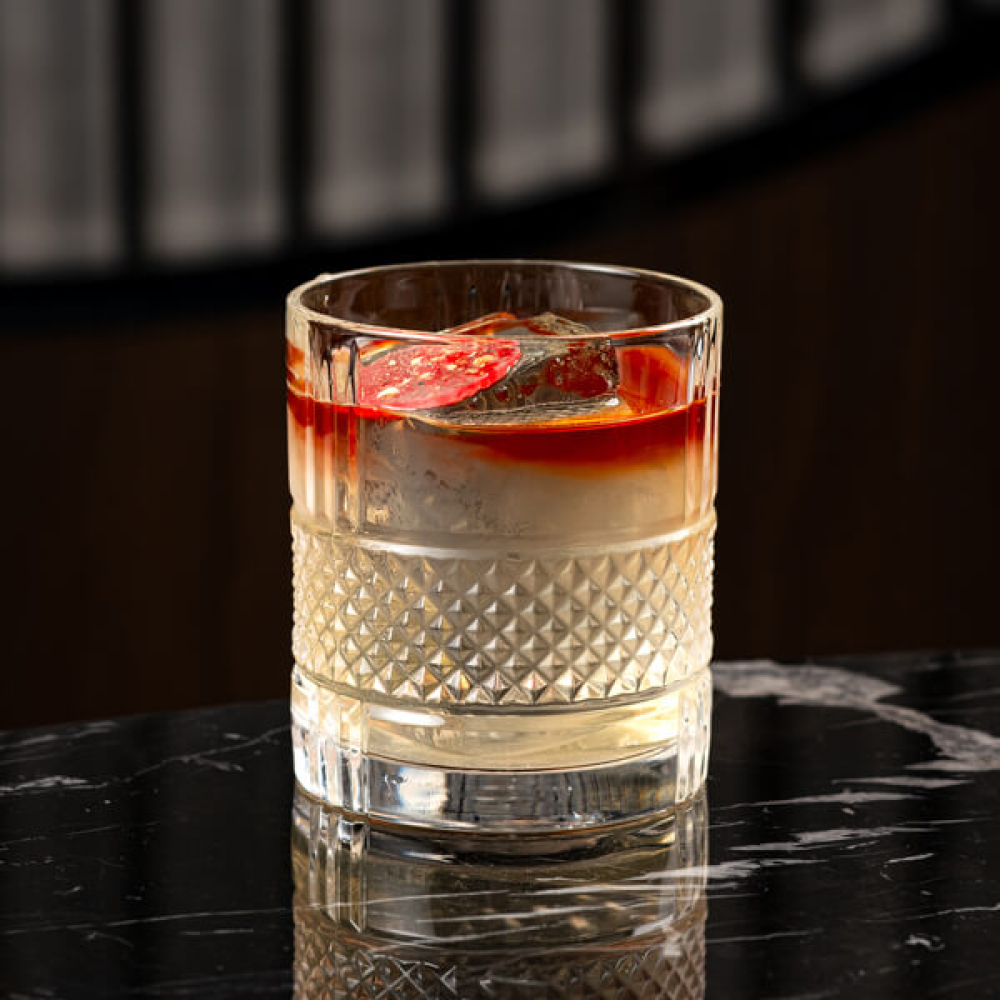 Цитрусово-ягідний твіст з полуничним лікером, текілою та квітковою прикрасою 110 мл